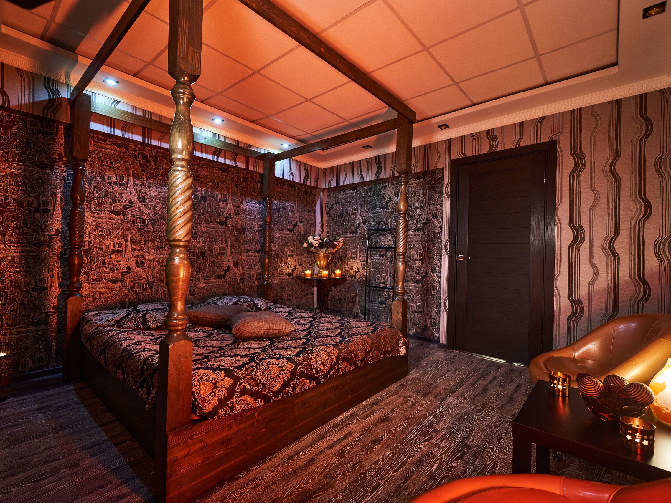 Лучший эротический салон Москвы Девушки мегаполиса не остановился на этих, естественных для любого респектабельного заведения, удобствах. Продуманный до мелочей дизайнерский интерьер создает приятную, расслабляющую обстановку. Изысканная роскошь обустроенных со вкусом апартаментов отлично дополняет чувственные и страстные эротические программы, которые приготовили для вас наши девушки. Цветы, картины, горячие напитки и нежность массажисток заставят забыть обо всем и поверить, что вы уже в раю. Загляните в гости на эротический массаж и убедитесь, что обстановка имеет значение!